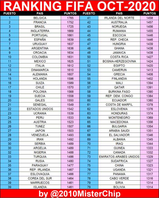 El Ranking FIFA es uno de esos espacios que miden el nivel de las selecciones nacionales en la actualidad. Como no podía ser de otra forma, el TOP 10 está ocupado por Europa y Sudamérica, aunque ha dejado una grata sorpresa en cuanto al liderazgo de la misma. A pesar de que muchos son los jugadores de talla mundial que luchan cada año con sus países para lograr el mayor número de objetivos, ni Francia, ni Portugal, ni Brasil, ni Uruguay, ni ninguna otra. La que encabeza la clasificación es la Bélgica de Kevin De Bruyne.