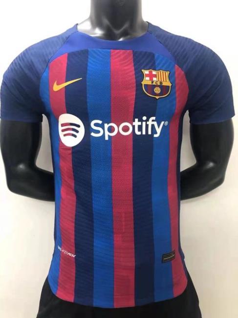 Como cada año, parece una tradición, se ha filtrado la que será la nueva camiseta del FC. Barcelona para la siguiente temporada. En esta ocasión, ha salido a la luz la primera equipación del conjunto culé que no abandona las rayas verticales blaugranas como ocurriera en la temporada 2019-2020, ahora, se ha perdido la cruz roja de la parte derecha de la actual vestimenta y se ha añadido una tercera franja vertical de color negro/azul marino muy oscuro del mismo que color que cubrirá la parte alta de la camiseta desde los pectorales hasta el cuello. A la derecha queda el logotipo de Nike, a la izquierda el escudo del FC. Barcelona y presumiblemente en el centro, a la altura del estómago, aparecerá el nuevo patrocinador del club Spotify.