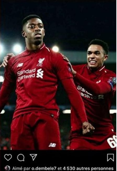 Pero es que no es solo eso. Como si no fuera suficiente como para imponerle un castigo ejemplar, lo peor es que la imagen corresponde al día… ¡del cuatro a cero en Anfield! Una de las derrotas más humillantes de toda la historia de la Champions League. Y al que Dembélé pone cara es Georginio Wijnaldum, autor de dos goles esa fatídica noche.