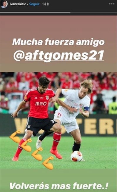 El internacional croata aprovechó para enviarle un mensaje a través de sus redes sociales, que dejó boquiabierto a todo el mundo. Porque en lugar de colgar una imagen de ellos juntos en el Camp Nou, de las que puede encontrar miles, decidió buscar en la hemeroteca hasta encontrar una en la que aparece Gomes con la elástica del Benfica y el balcánico, con la del Sevilla.