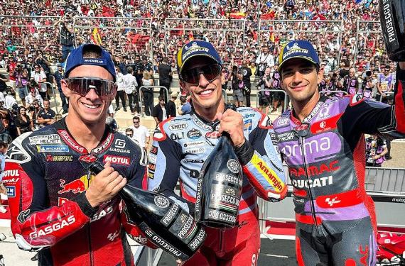 Márquez y Bagnaia, únicas sonrisas: frustración en casa Rossi y aviso serio en Ducati, Honda y KTM