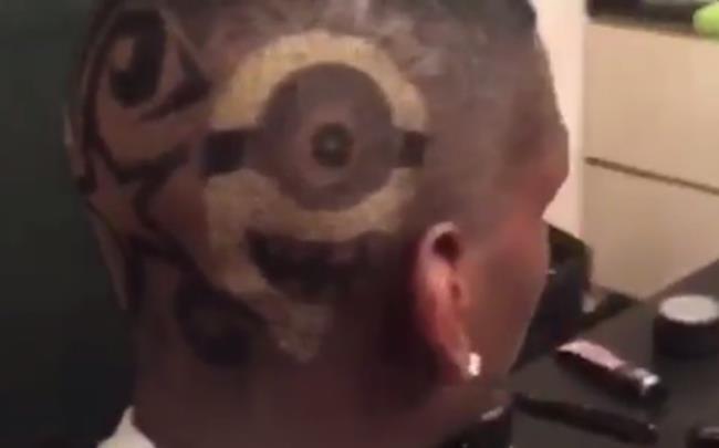 Pogba publicó un vídeo en su Twitter en el que se comprueba como en los laterales y la parte trasera de su cabeza se ha dibujado diferentes motivos, uno de ellos similar a un ‘Minion’ (personaje de una conocida película de dibujos) que igual que el futbolista también lleva una cresta.