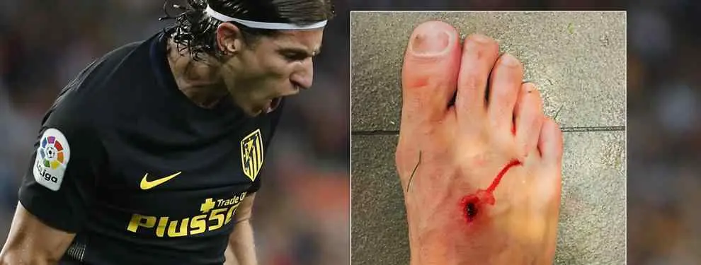 El lateral brasileño del Atlético colgó en Instagram una imagen de su pie desnudo sangrando por el empeine.