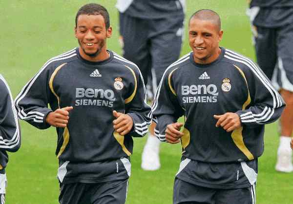 Se trata de Roberto Carlos. El mítico lateral brasileño que corrió la banda del Bernabéu durante muchísimas temporadas y que ha quedado en el imaginario merengue como el mejor lateral zurdo de la historia, fue también ‘padrino’ del chico que estaba llamado a sucederle en el Real. Y de compatriota a compatriota, los dos forjaron una relación que ha perdurado con los años. Ahora que Roberto forma parte del Madrid (entre otras cosas, comenta los partidos del primer equipo para la televisión oficial del club) y que también está en Japón con la expedición madridista, Marcelo quiso desahogarse con él.