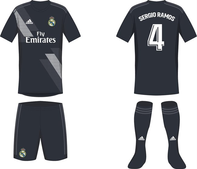 En este caso, Adidas ha decidido apostar por volver al negro, con unas tramas en gris y blanco al estilo del que llevarán algunas de sus selecciones en el próximo Mundial de Rusia y que le otorgan a esta segunda equipación del Real Madrid un aspecto retro. Los nombres y los dorsales, en este caso, serán de color blanco. Florentino Pérez, mientras, sigue buscando la manera de mejorar las condiciones económicas del patrocinio pactado con la multinacional germana que, precisamante, ya ha perdido a uno de sus clubs franquicia: el Milan ya ha hecho oficial su acuerdo con Puma.